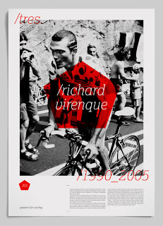 These work really well as a set. They use black and white photography and a different spot colour in various shapes for each one, to represent the cyclist, and the order of which they came. The layout has also been kept consistent.